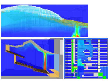 專業技術 本公司為建築物防火避難安全設計的專業防災顧問公司,可提供之專業技術服務如下: 01. 避難安全性能驗證 02. 火災延燒防止性能驗證 03. 結構耐火性能驗證 04. 火場分析模擬 05. 3D CFD煙控模擬 因應特殊空間使用性質,本公司採用動態流體力學(Fire Dynamics Simulator)分析模擬方式,評估火災時火場內的狀況,例如溫度、氧氣含量、可視距離、輻射熱等,以營造安全無虞的建築空間。 06. 人員避難安全模擬 因應特殊空間使用性質,本公司採用人員避難模擬軟體(simulex)進行人員避難安全評估,確認建築物避難安全無虞。 3D CFD煙控模擬-煙層下降情形 3D CFD煙控模擬-溫度分布情形